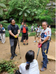 大峡谷是国家一级保护植物桫椤栖息地,桫椤与恐龙同代,距今已有2亿年历史,被称为"植物界的大熊猫"。行进途中,师生一边观赏数万株桫椤雄姿英发,一边探讨学术人生问题,在回归自然的爽朗轻松中,身心得以放松,品行得以砥砺,情操得到陶冶。一路笑语欢声,话题不断……