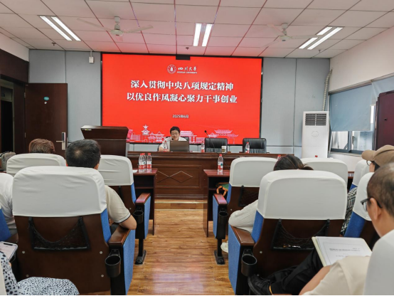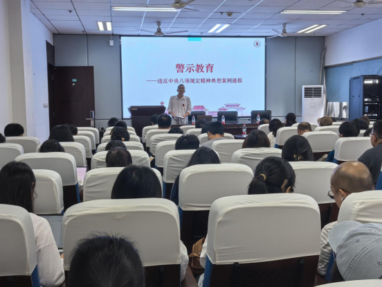 党委在江安校区文科楼二区704会议室开展深入贯彻中央八项规定精神专题党课暨警示教育大会。学院领导班子成员、党委委员、纪委委员、工会主席、专职组织员、各党支部书记、支委、科级干部、系主任及党员代表共100余人参会。会议由学院党委副书记兼纪委书记姜华主持。