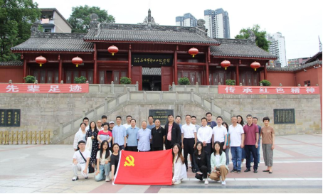 师生党员在川陕革命根据地红军烈士陵园铁血丹心广场合影。