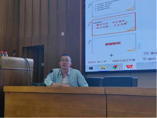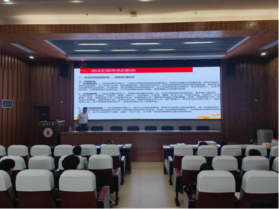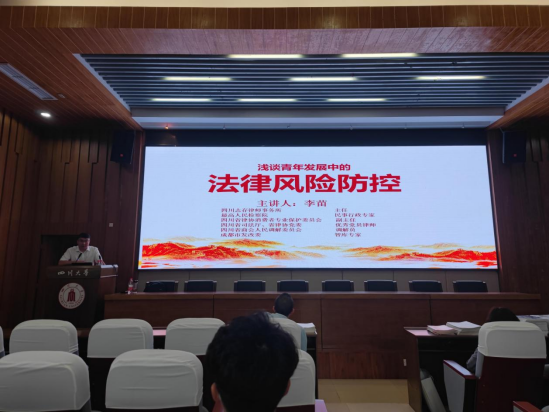 于江安文科楼负一楼报告厅,邀请我校校友、法学专家李苗律师为学院师生党员干部、支部书记、管理人员等作题为《青年发展中的法律风险防控》的专题讲座。会议由学院党委副书记、纪委书记姜华主持。