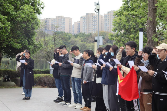 2021级博士支部、2021级硕士第一支部、2021级硕士第二支部联合组织开展了以“缅怀革命先烈,争做时代新人”为主题的清明祭英烈主题教育活动。支部41名党员和入党积极分子齐聚川大英烈碑前,通过默哀、敬献鲜花、重温入党誓词、发表感想、行鞠躬礼等方式缅怀曾经在川大学习工作过的革命先烈,重温革命先烈们的丰功伟绩,追思革命先烈们的光辉足迹。