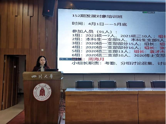 152期党员发展对象培训班开班仪式在江安校区负一楼报告厅举行。会议由学院专职组织员石琼老师主持,学院90余名党员发展对象参加此次开班仪式。