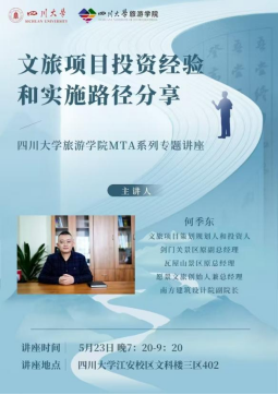 旅游学院,为同学们带来了一场主题为 “文旅项目投资经验和实施路径分享” 的精彩讲座。此次讲座于文科楼三区402教室举行,由a漫