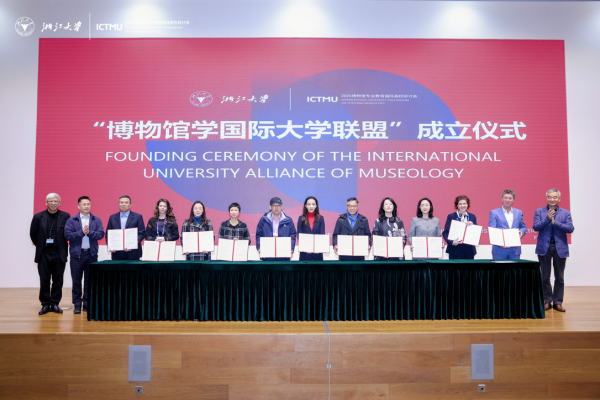 此会议由中国博物馆协会指导,浙江大学艺术与考古学院主办。会议开幕式由浙江大学艺术与考古学院院长赵丰主持,浙江大学副校长王靖岱、伦敦大学学院Alice Stevenson、中国博物馆协会理事长刘曙光先后向大会致辞。在此次会议上,举行了“博物馆学国际大学联盟”成立仪式暨联盟章程、共识的发布仪式,在与会专家学者、学生代表的共同见证下,由浙江大学联合全球多所顶尖高等教育机构共同创立的高校博物馆学专业研究平台宣告正式成立。