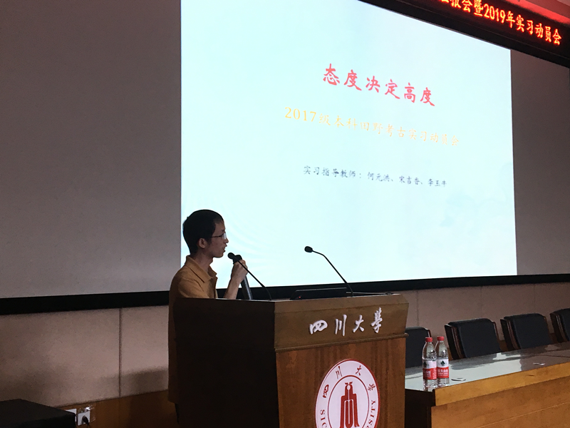 会议的第二个阶段是实习动员会。考古、文博专业三支实习队的带队教师及多位老师在实习即将开始之时为同学们动员鼓劲。2019年度海门口遗址考古实习队带队教师何元洪强调,态度决定高度,实习过程中要有责任心,讲究纪律,注意安全,责任心不仅指对遗址、遗迹、造物的发掘记录和整理,更多的也是对a漫