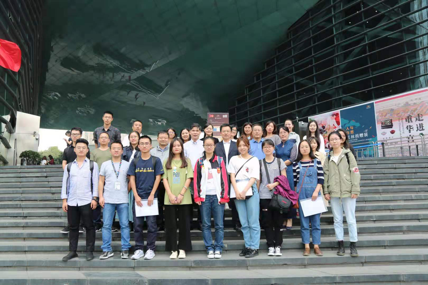 启动仪式结束后,参会的全体师生在成都博物馆前合影,2019年文物与博物馆学专业成都博物馆实习启动仪式圆满结束。