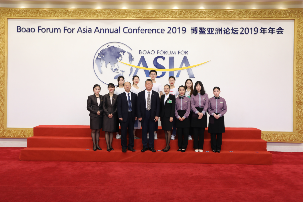 (旅游学院)招募了13名志愿者,加入礼仪接待、贴身管家、翻译等各个岗位。其中,赵振中同学担任沙特基建集团董事长的贴身管家,向淑娟同学担任圣多美和普林西比总理热苏斯的酒店翻译,周涛同学担任老挝总理通伦·西苏里的翻译人员等,以确保每一位参会者都能享受到“博鳌标准”的服务。