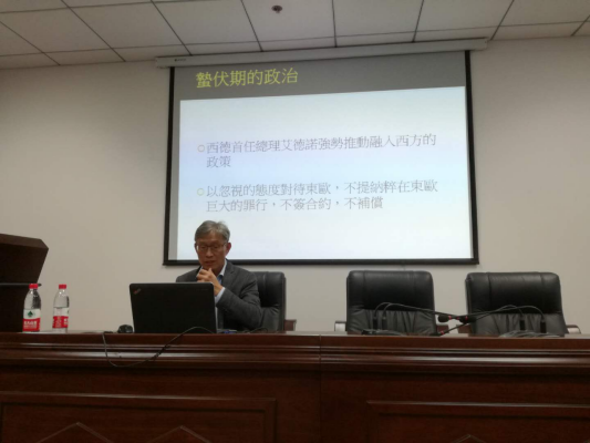 胡昌智教授将战后德国的历史反省分为四个阶段,并分别从政界、舆论、学界三个层面阐述每个阶段的特点。胡昌智教授首先详细介绍了1945年到1960年代历史反省的蛰伏期,其后重点分析了1970年代历史意识的重大转变以及1980年代的“历史学家之争”,最后阐述了两德统一后人们对历史问题的态度。 随后,同学们就东德的历史反省模式、德国历史反省的现实考量以及去纳粹化等问题向胡昌智教授请教。本场讲座不仅给同学们带来了国际前沿的观点,更让我们对德国的历史境遇有了更加深入的了解。