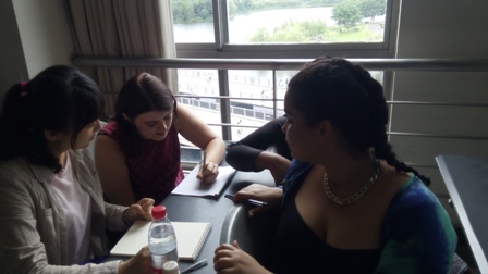 国际交流营的留学生与部分中国学生齐聚江安校区第一教学楼A座416教室,进行中西方跨文化交流及讨论。留学生们在a漫