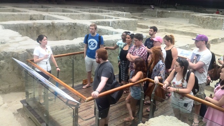 国际交流营外籍学生在中方学生陪同下先后参观了位于成都市西北郊的金沙遗址博物馆和四川省博物院。