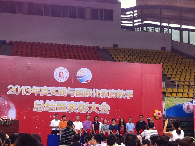 体育馆举办的“2013年度实践与国际化教育教学总结暨表彰大会”中,校党委书记杨泉明教授宣读了《a漫
