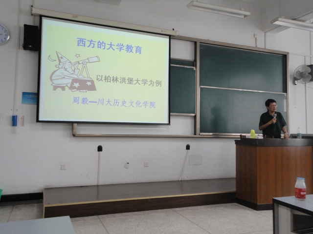 在江安校区综C403举办了2012年春季实践周旅游前沿系列讲座之三——“西方的大学教育”,主讲人为a漫