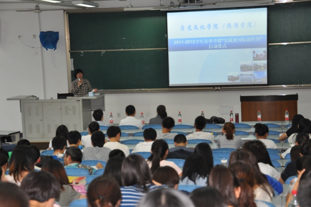 (旅游学院)2011-2012学年春季学期“实践及国际课程周”启动仪式在江安校区综合楼C107举行。教学院长李德英教授主持仪式,教师代表王东杰教授、黄博博士、辛旭老师、邹卫老师、刘红艳老师、教务李建艳老师、10级辅导员沈爱平老师以及10级全体学生参加了启动仪式。