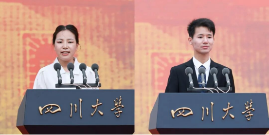 在校生代表、轻工科学与工程学院2022级博士研究生张婷和新生代表、华西临床医学院2025级硕士研究生王泓力在发言中向学校、师长和父母表达了衷心感谢。他们说,作为新时代的川大人,将始终秉承“严谨、勤奋、求是、创新”的川大精神,不断追寻光、成为光、传递光,在科研创新中勇毅前行,在服务社会中彰显担当,为强国建设和民族复兴贡献青春力量。