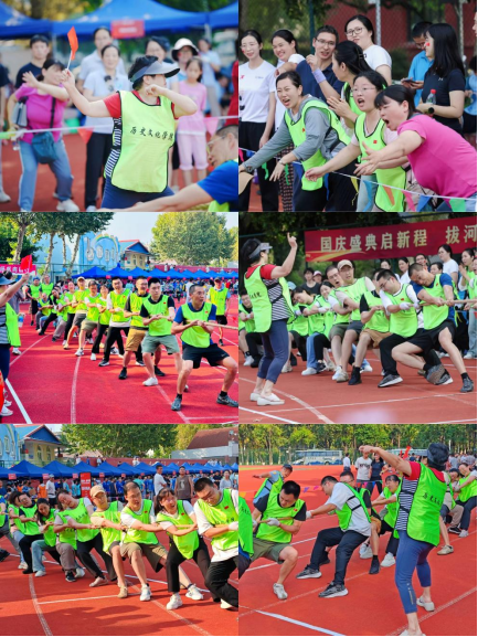 教职工迎国庆拔河赛”在望江校区东区体育场举行。本次比赛旨在增进不同学院之间的交流、增强学院内的团队精神和凝聚力。在这场力量与技巧的较量中,a漫