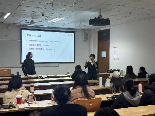互动交流环节,同学们围绕菜品标准化、高端客群维护、节假日运营应对、行业竞争突围等问题踊跃提问。庞静菁董事长结合实战经验逐一回应,分享了“核心岗位稳定+不定期抽查”的川菜标准化路径、“店长牵头+细化服务”的客群维护方法,以及在行业内卷中“坚守自身特色、持续创新融合”的破局之道。她鼓励同学们,创业需兼具战略眼光与务实精神,既要敢于突破常规,也要重视精细化管理与风险控制。